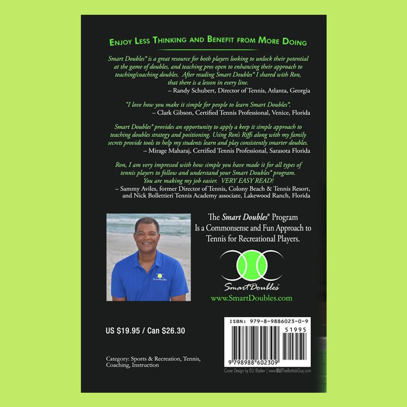 Smart Doubles is an easy to read and easy to follow book/program for all recreational players. I have incorporated some of the tennis tips to make my game more successful. Ron uses cute phrases to help you remember strategies i.e. “money middle” and “high you die”. After years of teaching as a top tennis professional in Florida and Georgia, he has mastered the art of recreational doubles strategies and court etiquette. The illustrations on court formations are simple to understand. If you have a regular tennis partner, he/she should read it too, so that both have a more successful game and more fun.